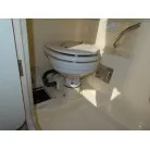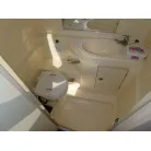 右舷には、ギャレーを装備し、シンクを装備しています。 トイレは操船席の前方に装備され、個室の電動マリントイレとなっています、清潔感あふれるマリントイレとなっていました。