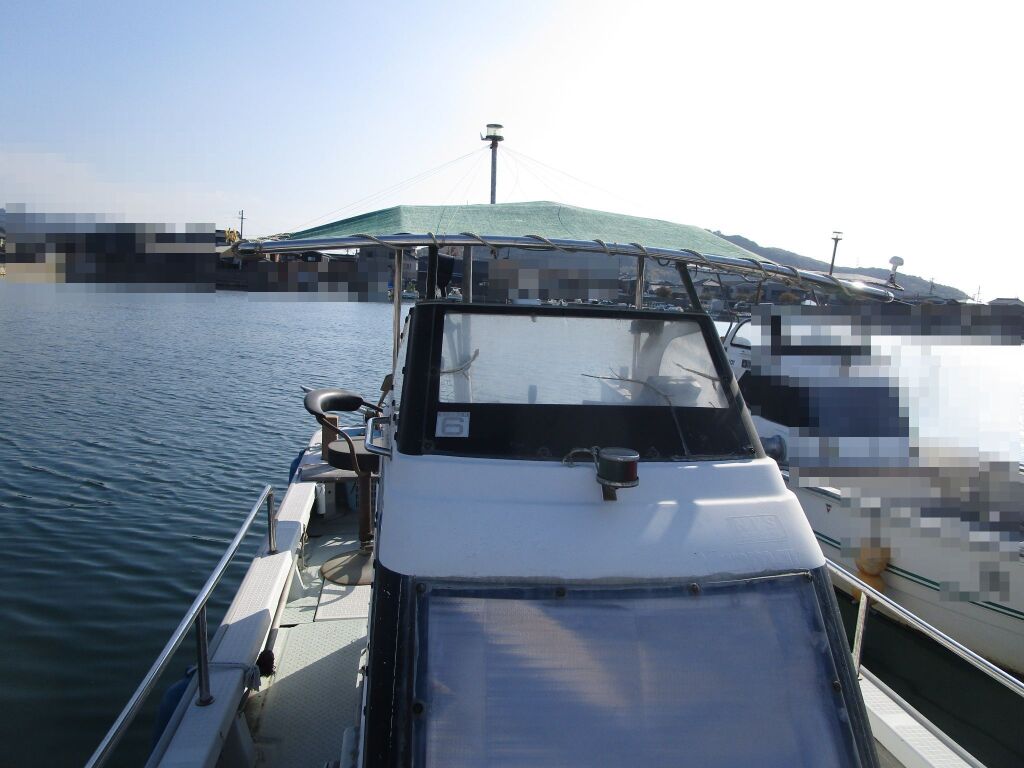 船底が汚れていますので(ペラ、シャフト、舵)試乗では10ノット程度の走行でしたが、清掃すれば23ノット程度で走行できるとの事でした。見学までにペラ、舵、シャフトを清掃しますので試乗でご確認ください。