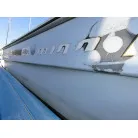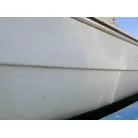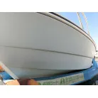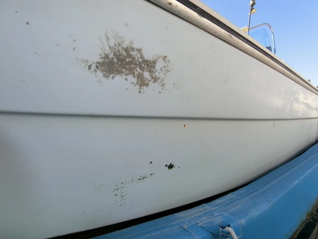 ・薄水色のハル周りは右舷側は小傷程度で良好。左舷側はガム汚れや擦り傷が見られます。