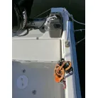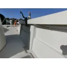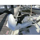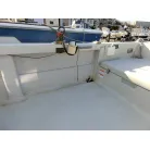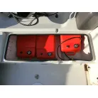 ・スターンデッキの収納は右舷側にバッテリーや主電源、左舷側に燃料タンク3つ(25リットルが3つ)が