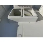 ・センターコンソール前に設置された大型のイケスはハッチが左右に分割され、両舷側から釣果の出し入れが