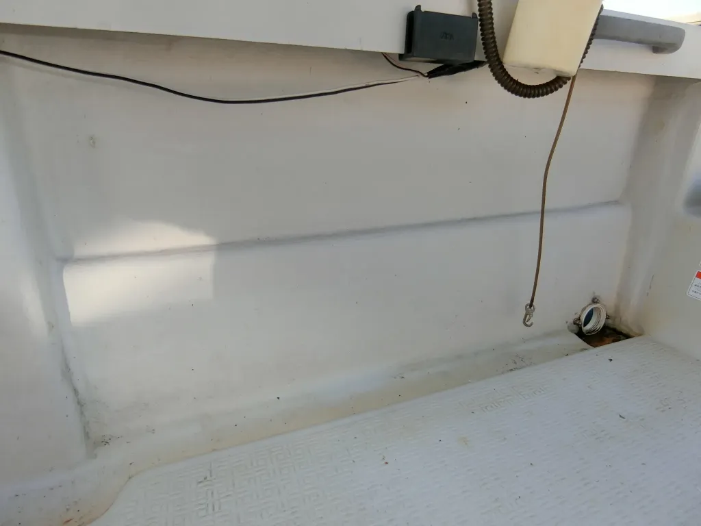 ・操船席シートはありませんが、シートを取付する為のベース金具がデッキ上に残っており、