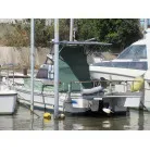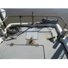 操船席上部の日除け屋根はオーナーさんが自作されたそうで、簡単に取り外しもできるそうです。