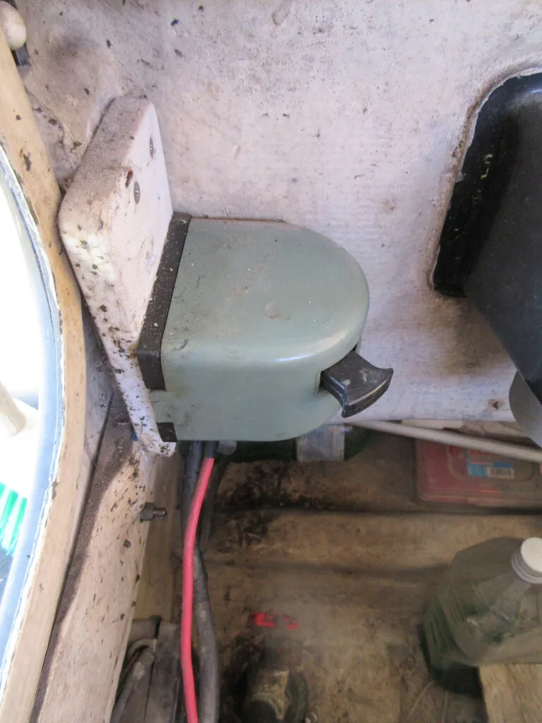 操船席にはGPS魚探が装備されておりますが、劣化のため画面がよく見えない状態です。
