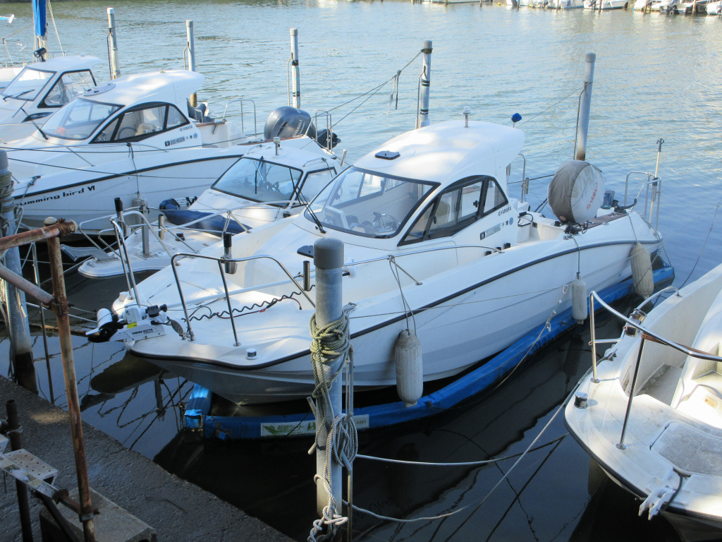 現在は係留保管ですが船底シートを設置しているため、貝の付着等は無いと思われます。