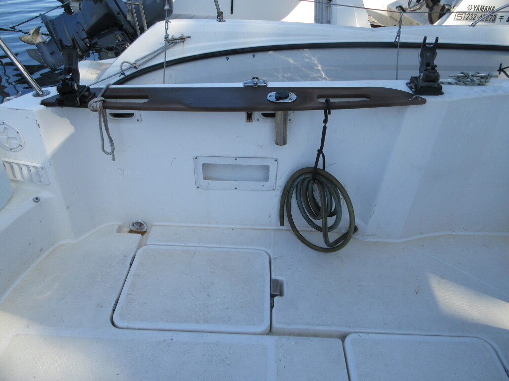後部デッキにはデッキライト、デッキウオッシュ、スタンレール、イケスが装備されております。