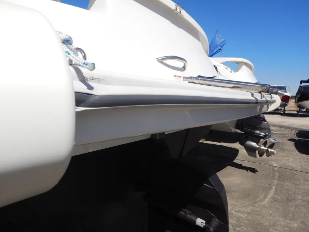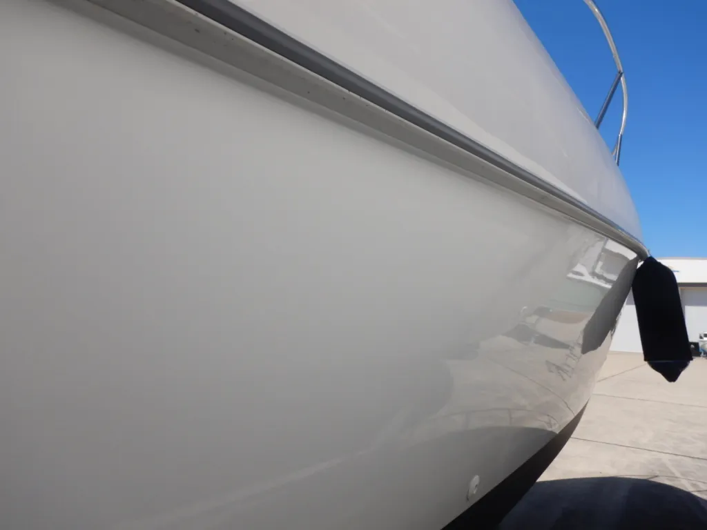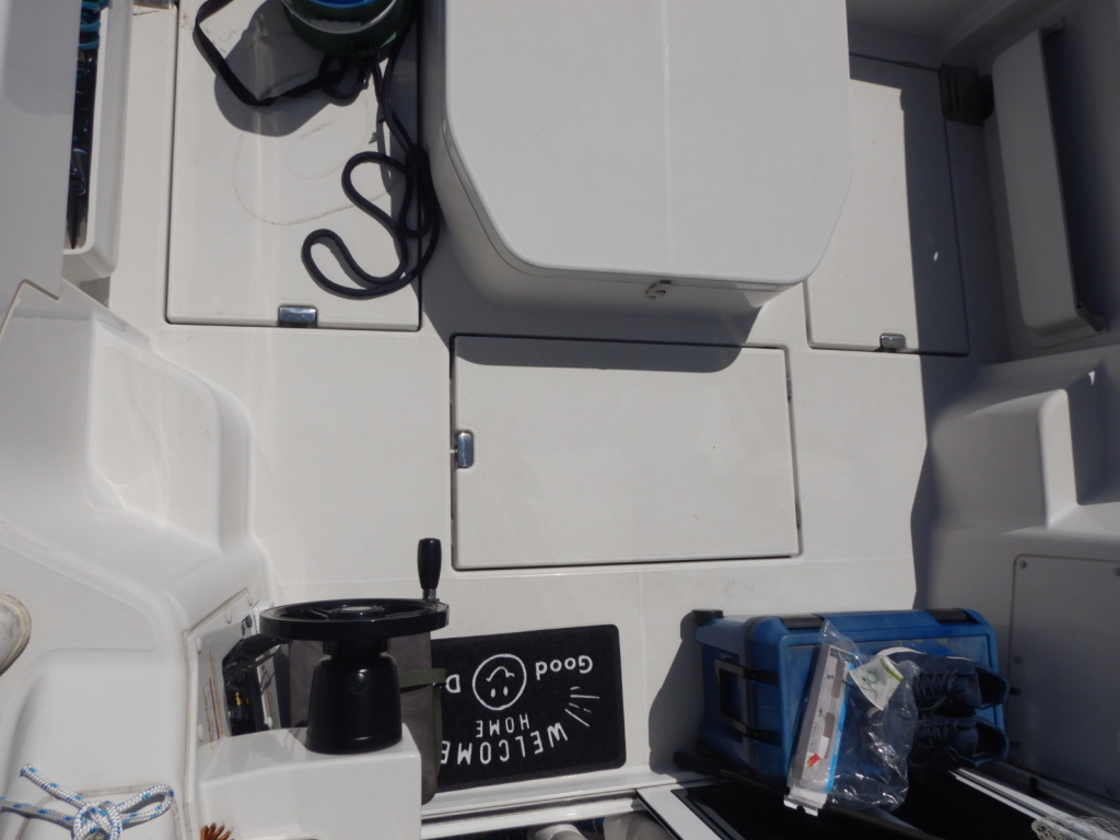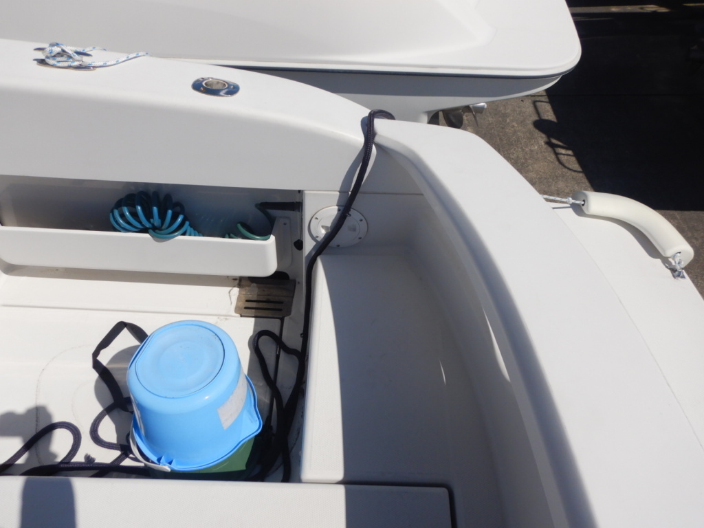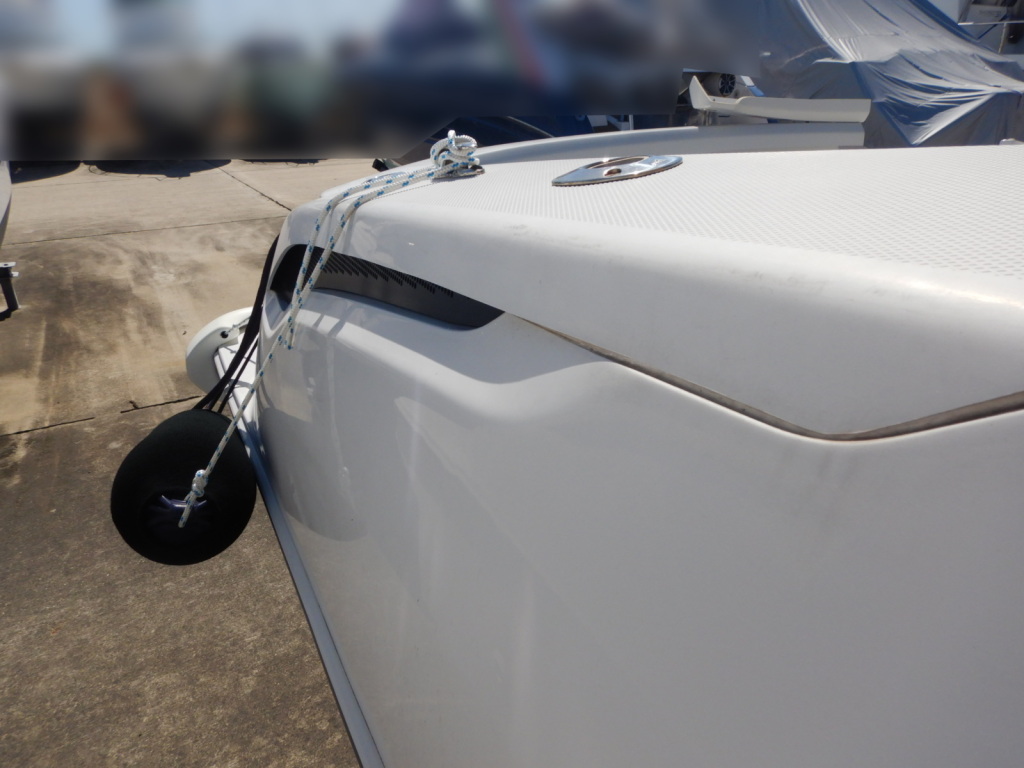 外観では、一点のみ左後方の角付近を擦ってしまい、ガンネルの曲がりとFRPの小さなクラックが有ります。