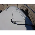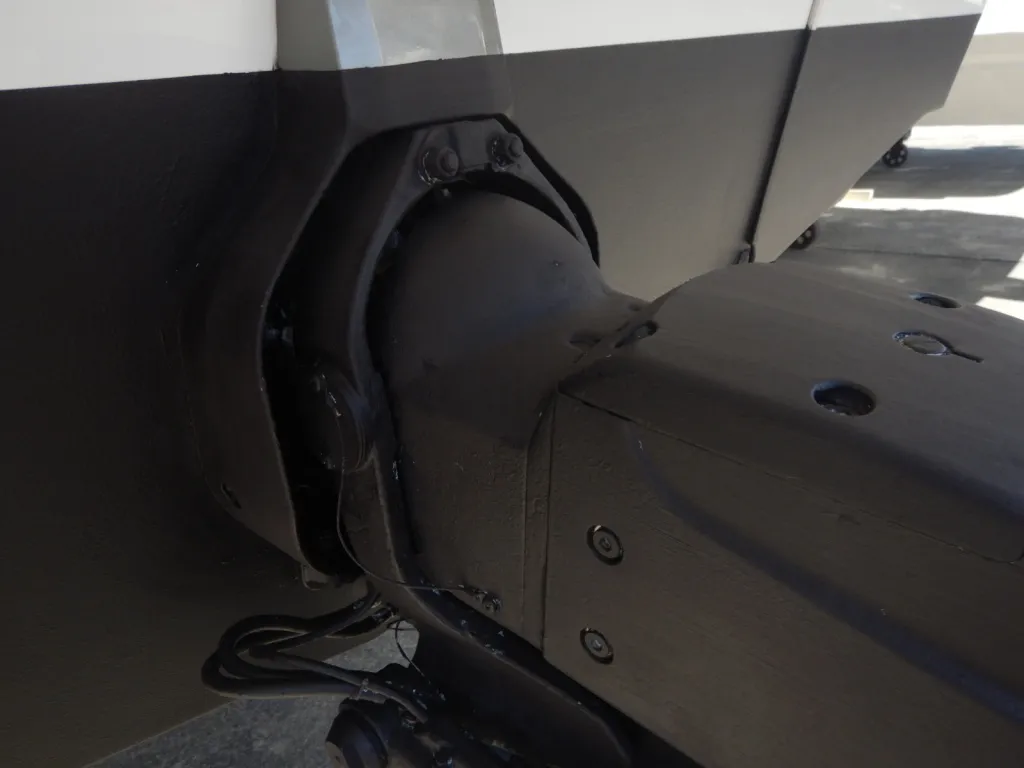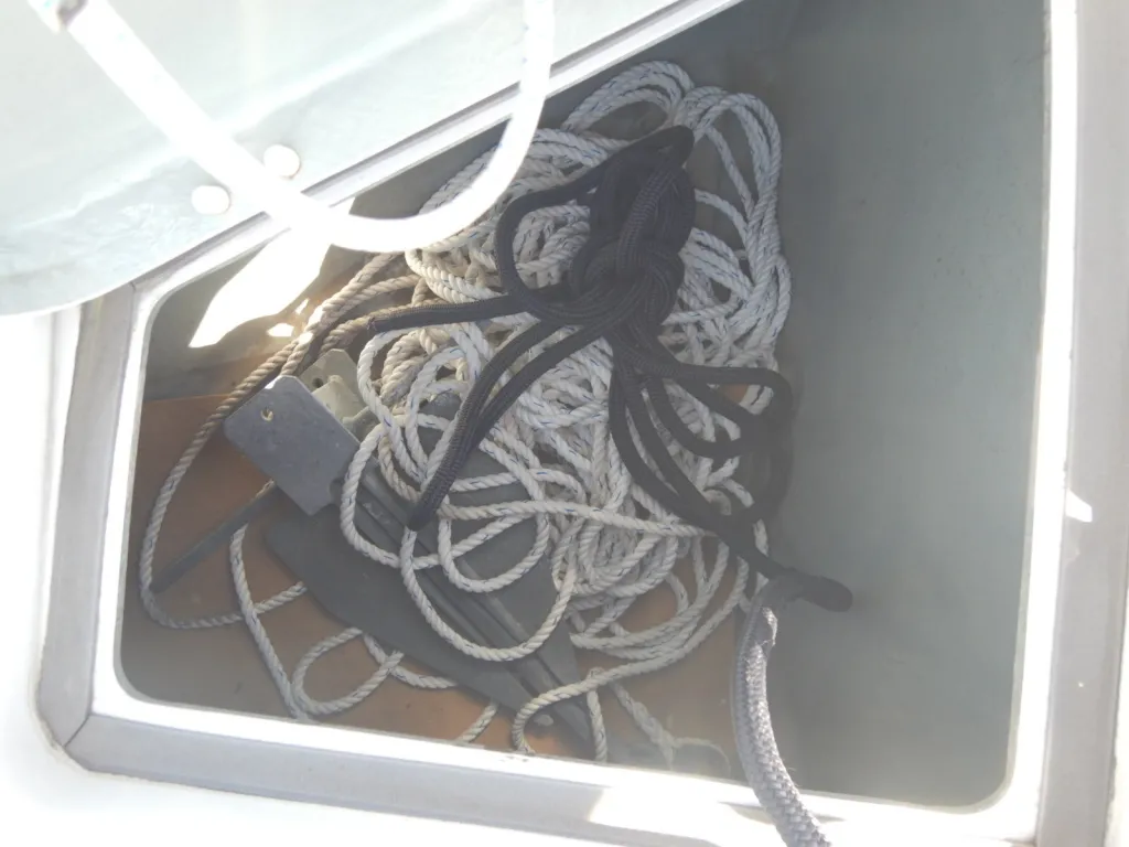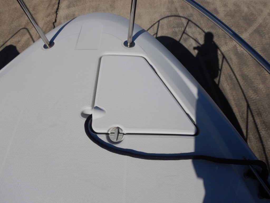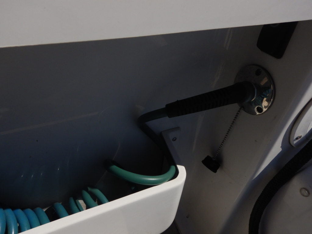 外観では、一点のみ左後方の角付近を擦ってしまい、ガンネルの曲がりとFRPの小さなクラックが有ります。