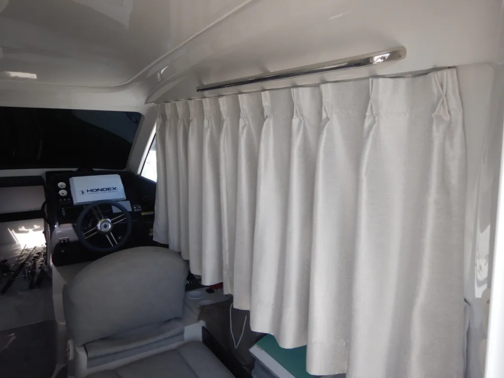 ポーナム28Vは、ヤンマーとトヨタの共同開発のハイブリッドハルが採用され軽量、静音かつ強度が確保されているとの事で、数々の艇を乗り継いで来られたオーナー様も、波切りの良さとソフトな乗り心地を一押しされていました。