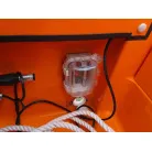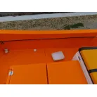 バウ側には収納スペースが装備されており、アンカーを収納することができそうです。操船パネル下部にも収納スペースがあり、現オーナー様は救命浮環を収納されていました。