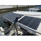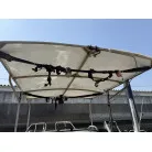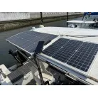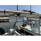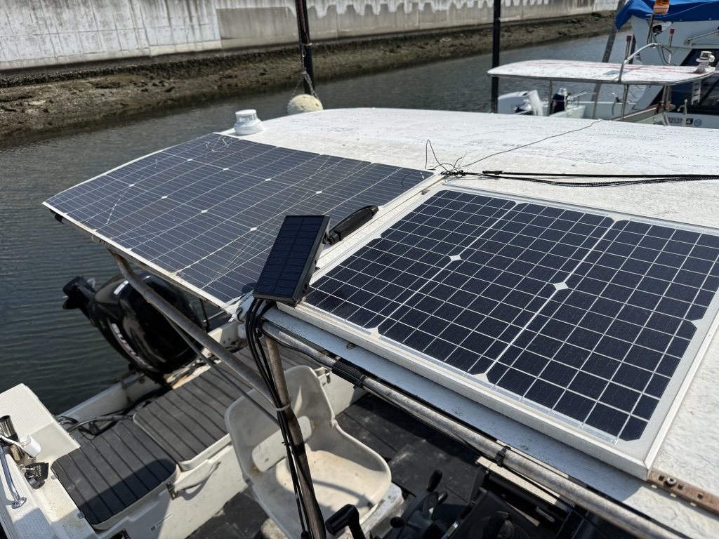 ルーフ上部には、ソーラーパネルが2枚設置され、それぞれメインとサブバッテリーに繋がっているそうです。デッキライトはセンサーライトで、専用のソーラーパネルからの充電となります。