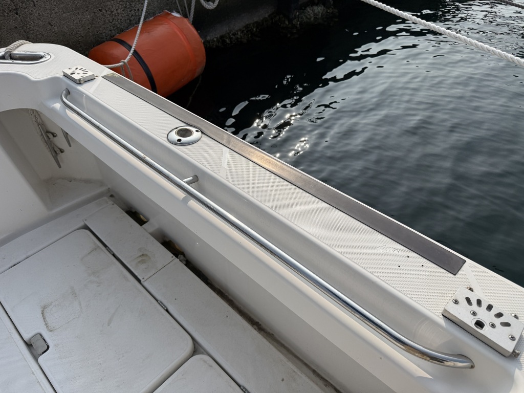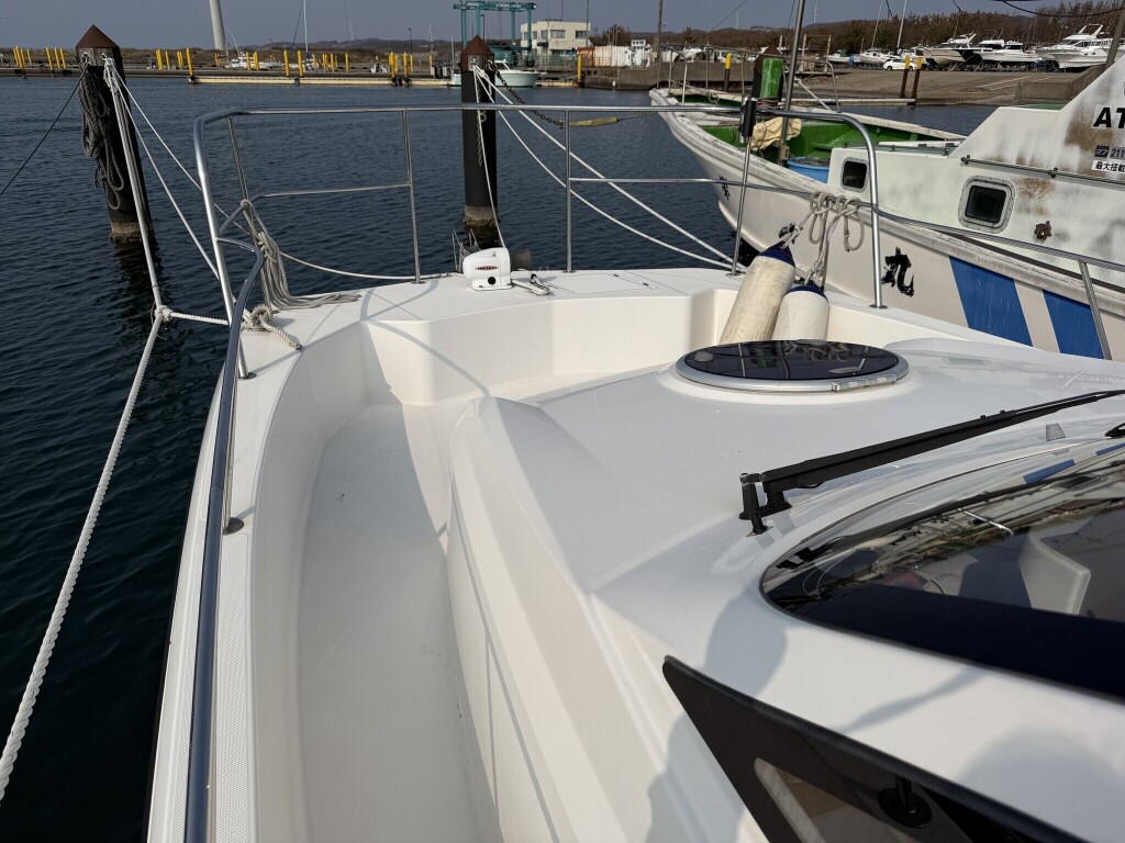 バウからアフトデッキに掛けて大型のハンドレールが備え付けられていますので、デッキの移動が容易に実施することが可能です。