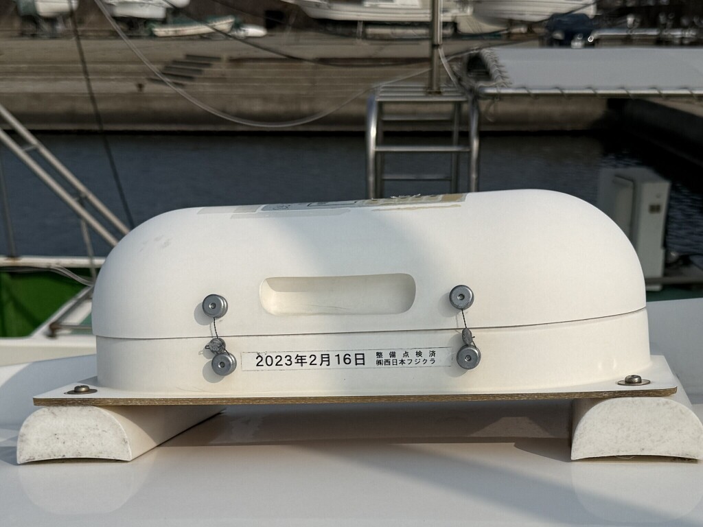 キャビン上には、定員12名分(6人用☓2セット)の膨張式救命浮器が備え付けられています。