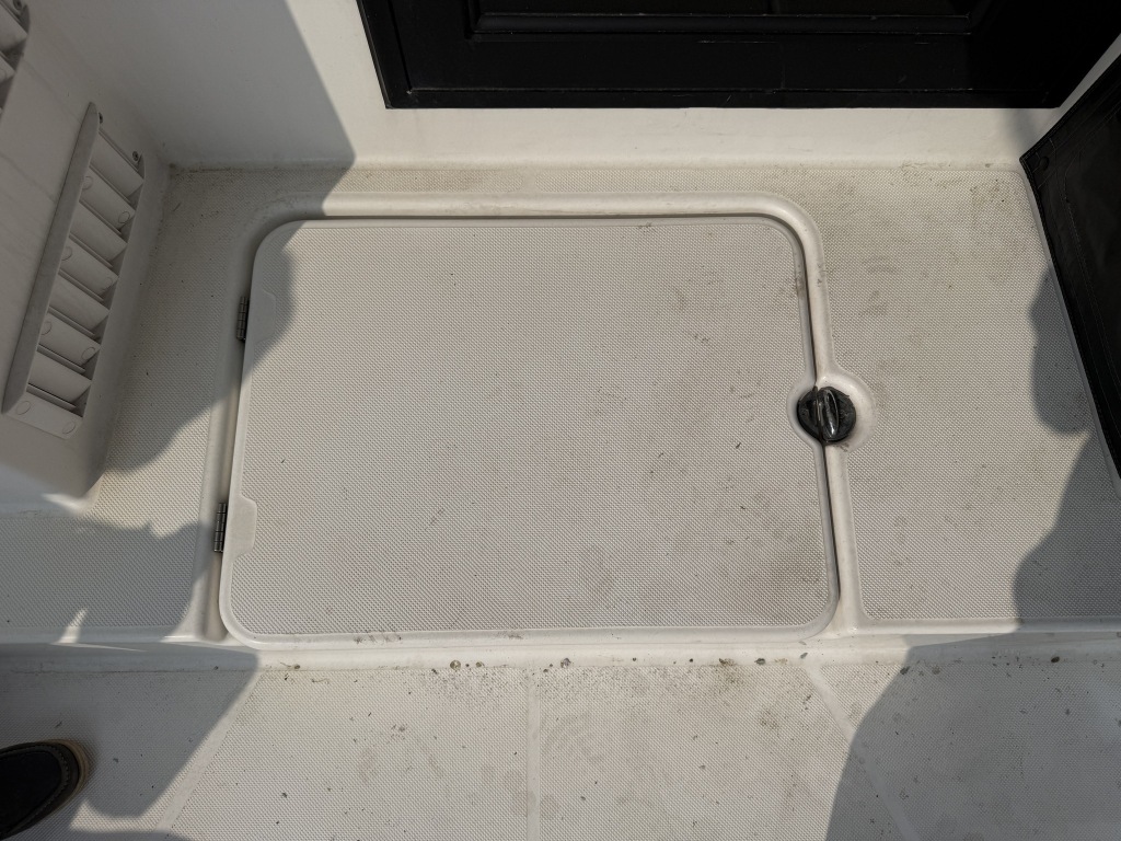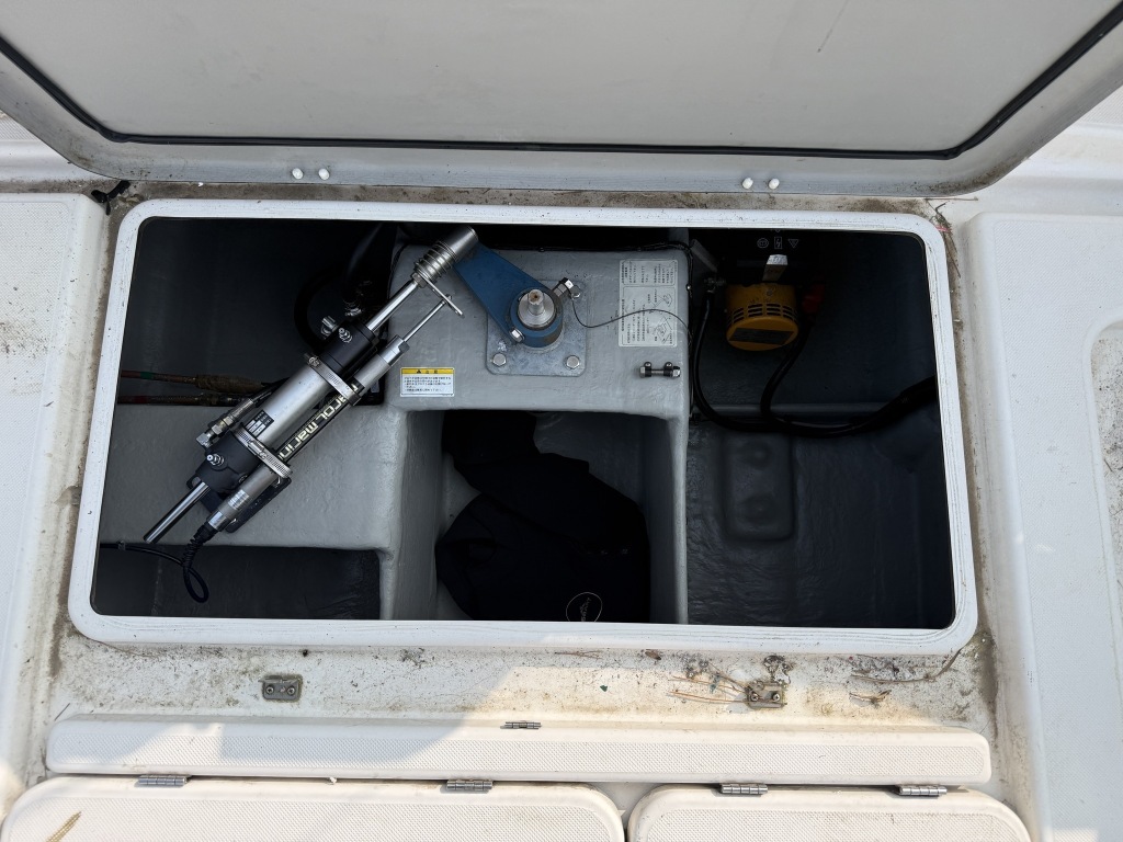 キャビン内フロアのハッチを開けると、ソナー本体があります。
