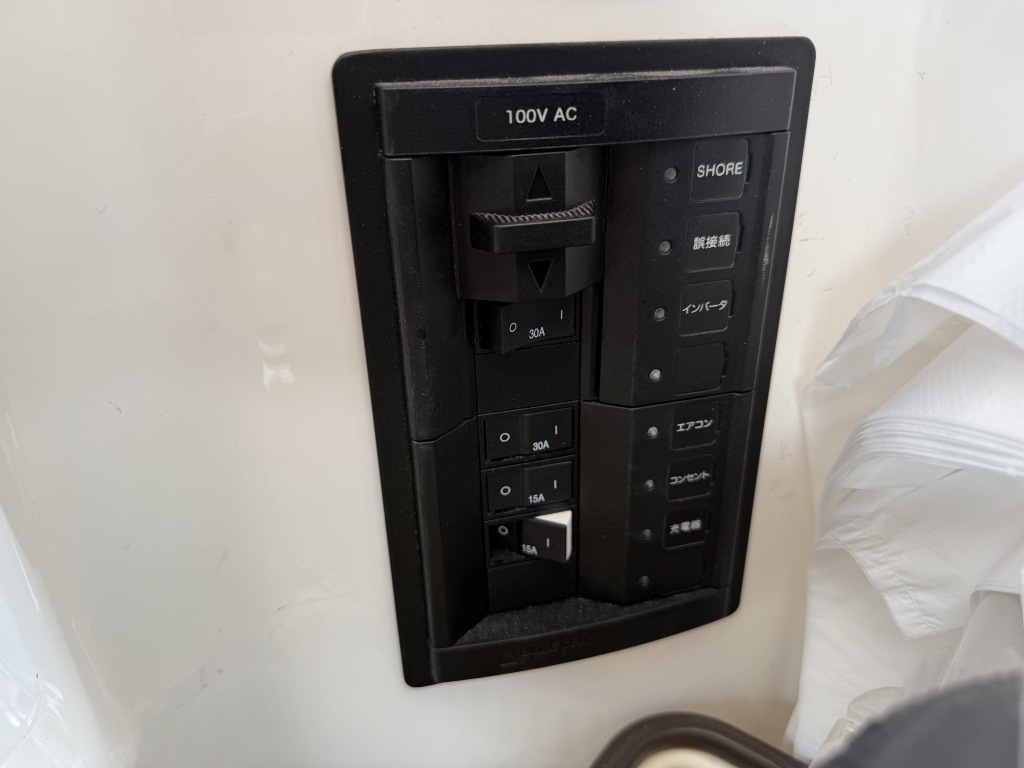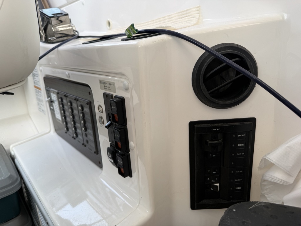 電動リールコンセントがアフト側に3箇所装備されています(12V用2つ、24V用1つ)。
