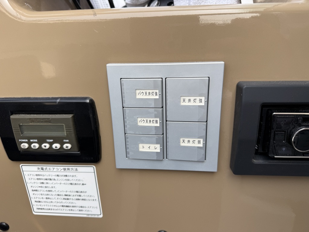 その他、マリンエアコン(ヒーター付)、冷蔵庫、電子レンジ、AC100V用のコンセントなど多くの装備があります。