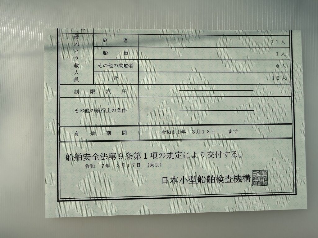 | 定員 | 12人 | 次回船検 | 中間検査(2026年06月13日) |