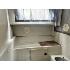 割と大きなキャビンには個室トイレ、バウバースが備わります。時化の時など同乗者全員が雨に濡れることは無いでしょう。