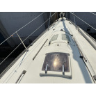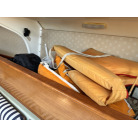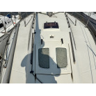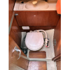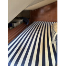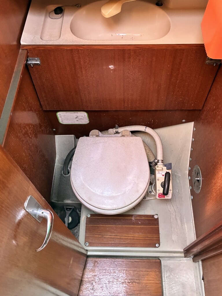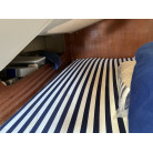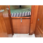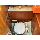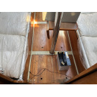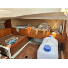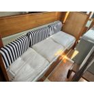 階段を降りると中央にテーブルがありそれを挟むようにシートがあります。このテーブルは取り外せるようです。奥にバウバース奥左舷に個室トイレがあります。