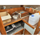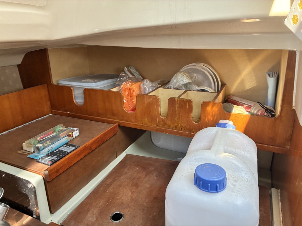 階段降り左舷にギャレー、ギャレー後ろにクオーターバースがあります。