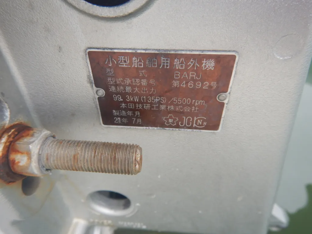 | 船検証記載馬力 | 135馬力 / 5,500rpm(回転数) | 推進機器種類 | 船外機 |