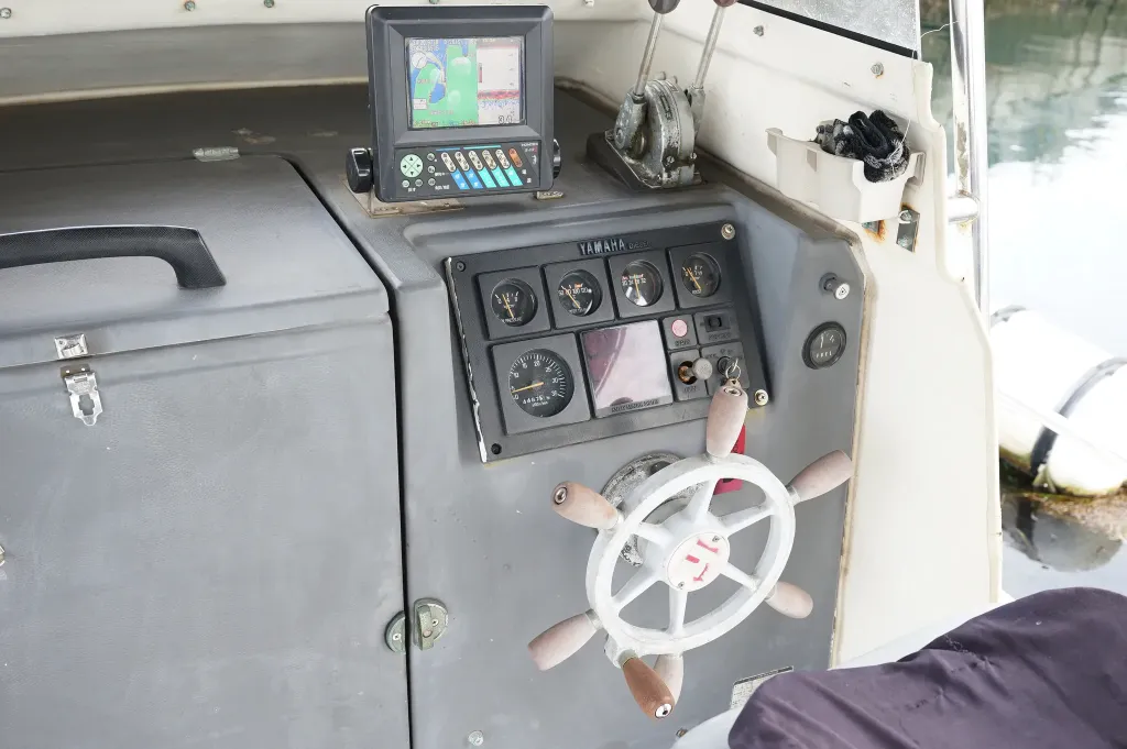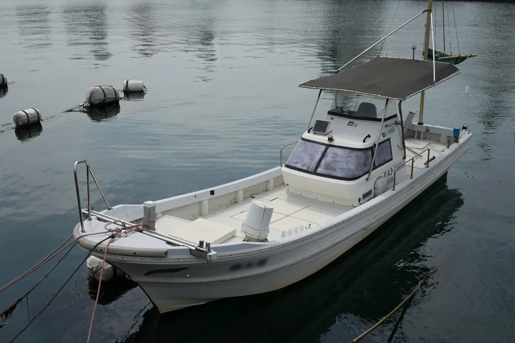 上架しての船底メンテナンス、バッテリー×2の交換、船検を3月に済ませたばかりで、取材の際に試乗もさせていただきましたが、現状では特に追加で手を入れる必要のないコンディションでした。現在はJCIの登録と漁船登録があります。