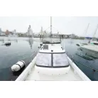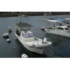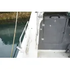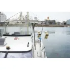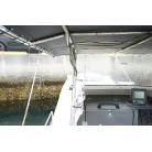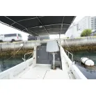 DX-30にはハードトップのタイプもありますが、この艇は風防ブリッジタイプでアフとデッキ全体を覆うオーニングが設置されています。