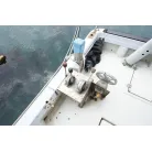 バウデッキには電動ウィンチ、アフトデッキには2ステーションが設置されています。床下のデッキ収納やイケスも十分な量があります。取材時にスパンカーは広げていませんが特に問題ないとのことです。