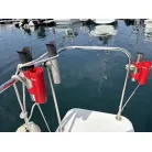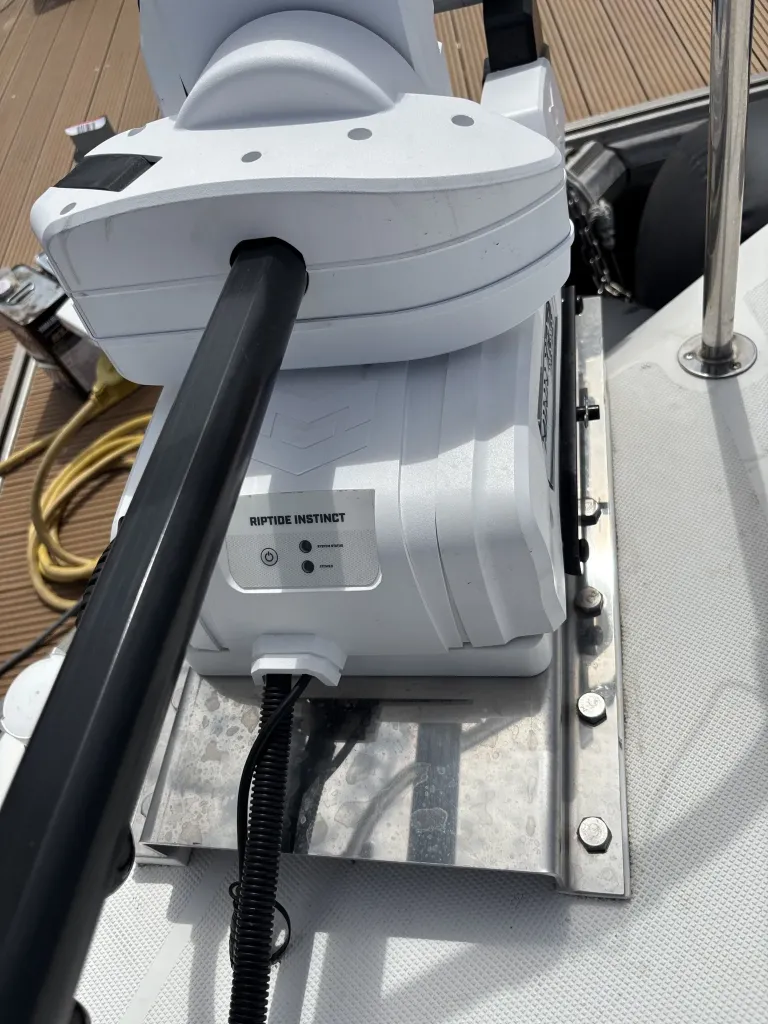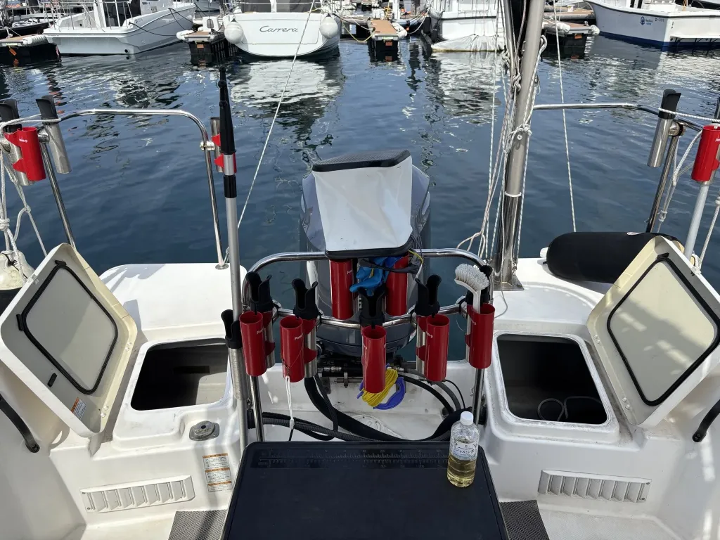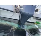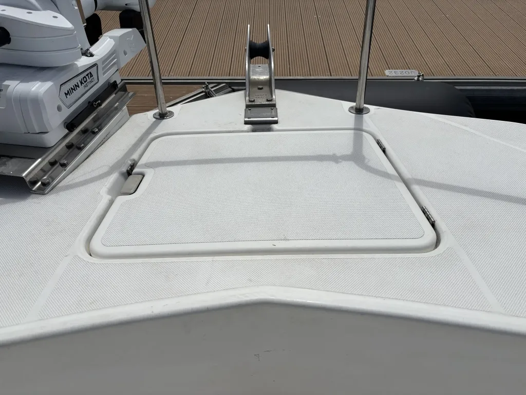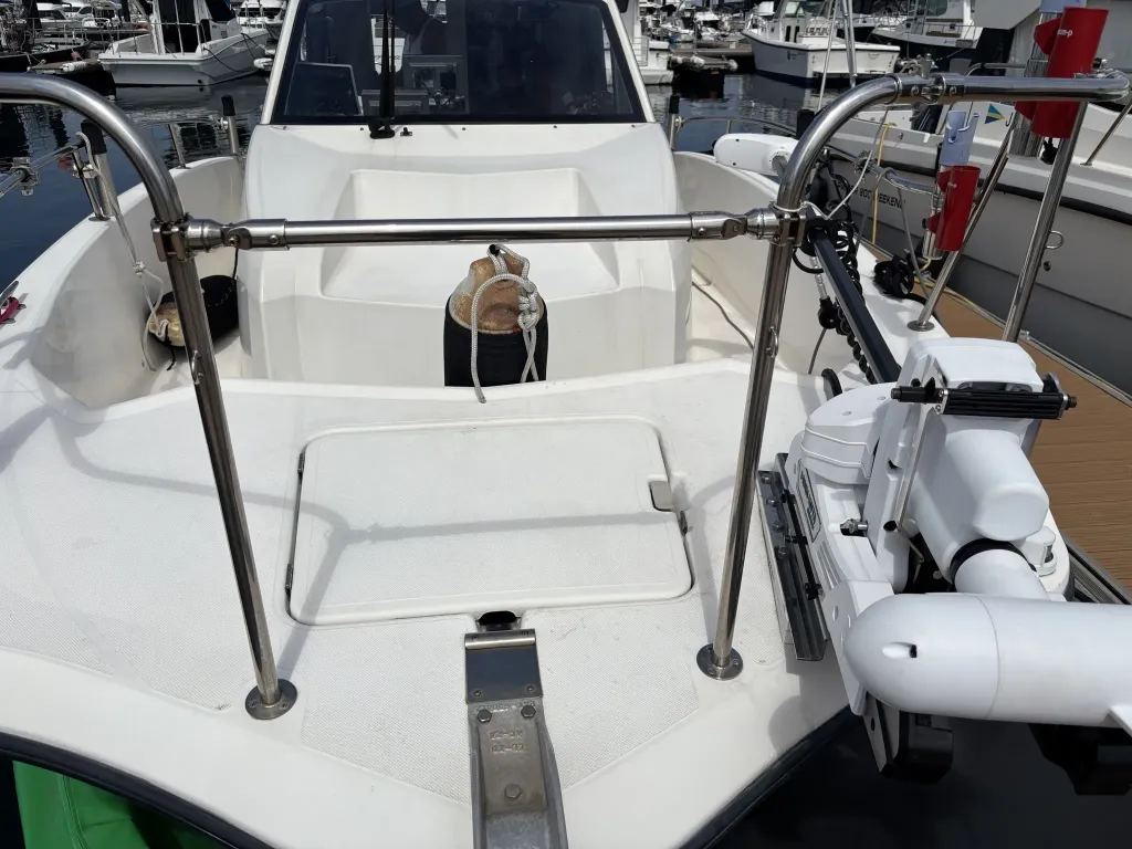 バウ側はアンカーデビット設置済み、トランサムは収納式のトランサムラダーが設置されております。