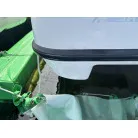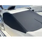 キャビン前面のフロントウィンドウ、ミンコタには、日焼けや劣化を防ぐための専用の黒い保護カバーを普段取り付けているようです。