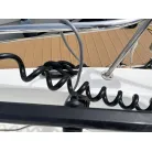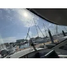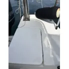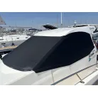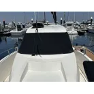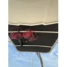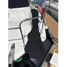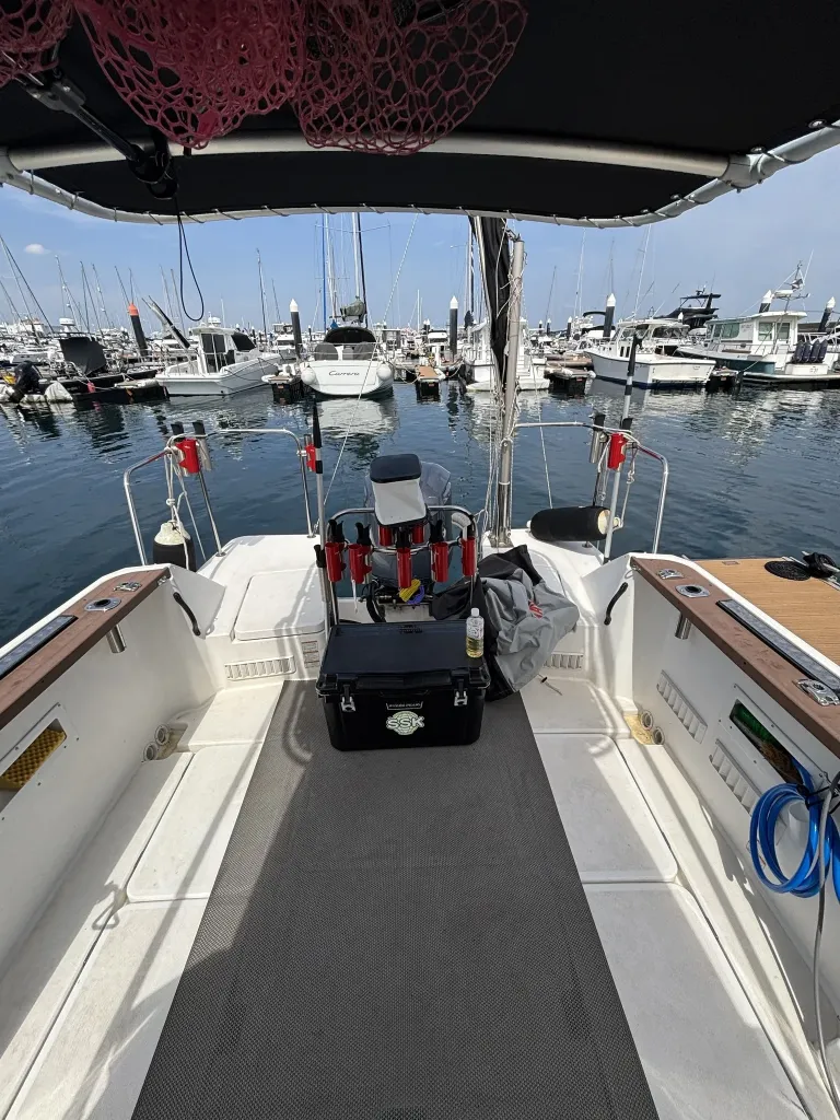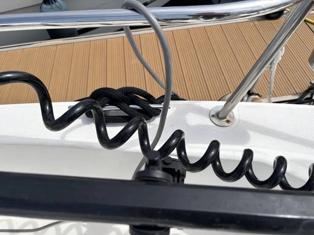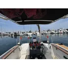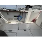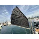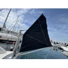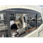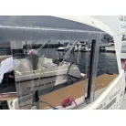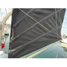 オーニング(日よけ): アフトデッキの大部分を覆う大型のブラックオーニングが展開されているため、夏の暑い日差しや急な雨の日に重宝します。