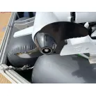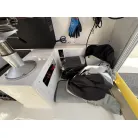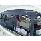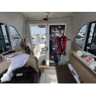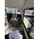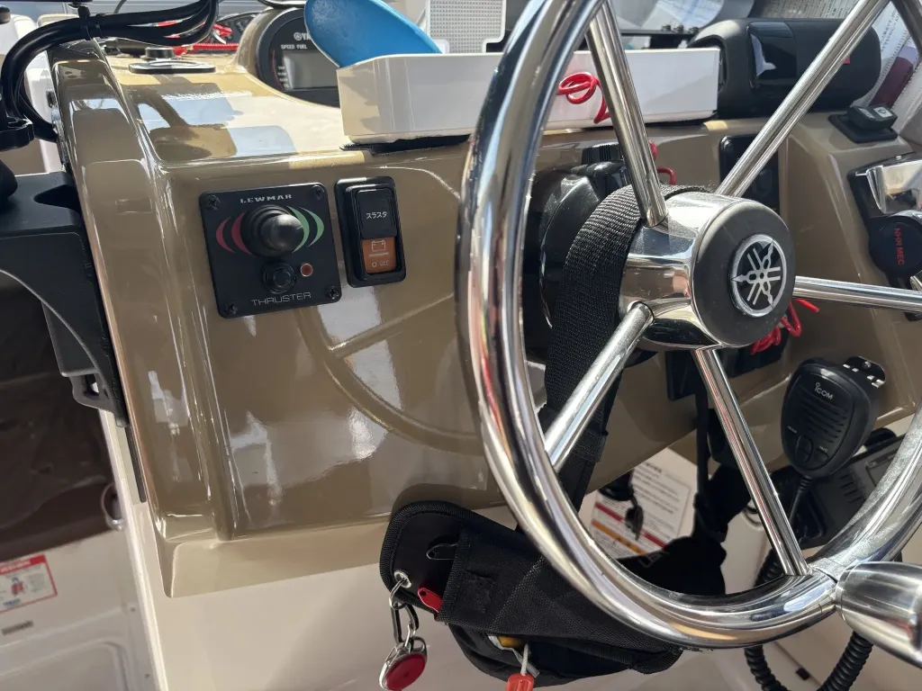 アフトステーション(2ステーション): キャビン右舷側の後方に、アフトステーションが設置されています。ステアリングホイール(ハンドル)、電子スロットルレバー、バウスラスターの操作スイッチが備わっております。