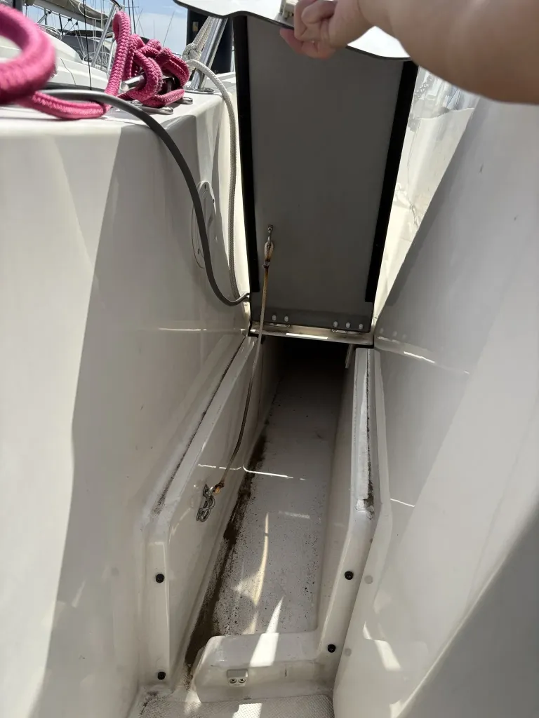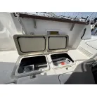 各種ハッチ: デッキ中央のハッチを開けると、大型のイケスが備わっています。後方のハッチはエンジン、アクセサリーのバッテリーや荷物入れが完備しております。