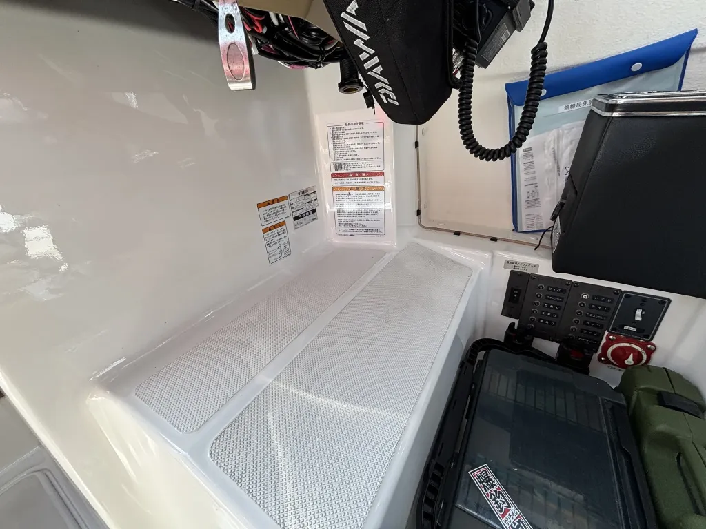 室内後方右舷側には、フィッシングサポートリモコンが装備されているため、船長も操船席から解放されて、ご家族やご友人と一緒に釣りができるところもこの船の魅力の一つです。