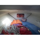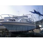 この艇には珍しくハードトップが装備され、雨の日やお子様連れの航行には