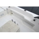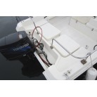 ステアリングは、使い易い漁船タイプのステアリングホイールがついており、また油圧ステアリングですので、操作は非常に軽いです。