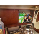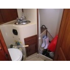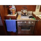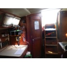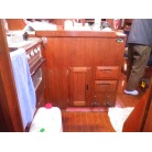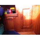 キャビンに入り、左側にはキッチンが有り、その奥にはベットルーム(オーナーズルーム)があります、Vバースは現在では収納スペースとして使用されている模様です。