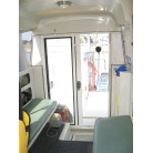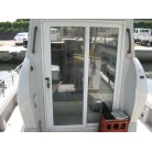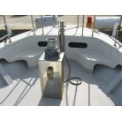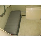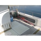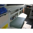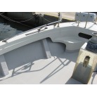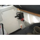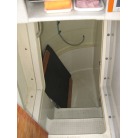 運転席の前に本来トイレが装備されていますが、この艇はアフトデッキにトイレを装備していますので、このスペースは物入れのスペースとなっています。