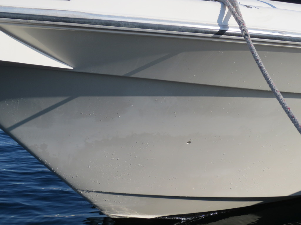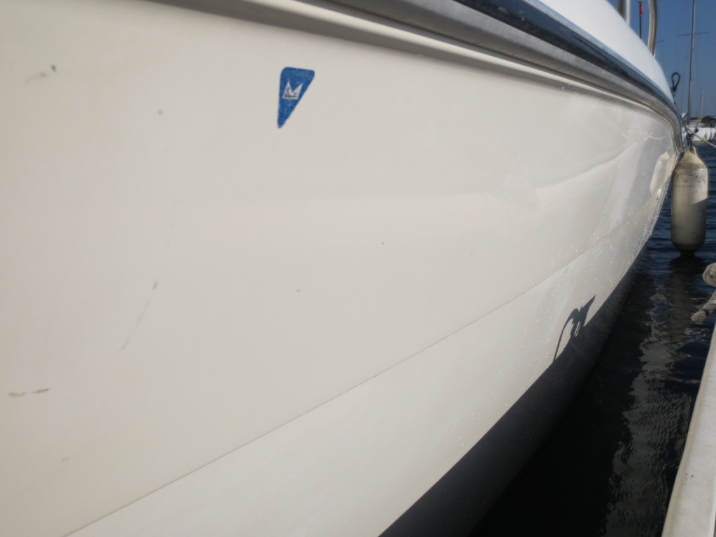 バウスプリッド周辺に数ヵ所、アンカーによると思われるFRPの欠けがありますが、バウスプリッドから後ろのバウデッキ部分は、FRPのノンスリップの欠けも見られず、非常にキレイです。