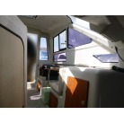 明るい操船席は見晴らしも良く、計器類も見やすい位置に設置されています。