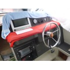 きれいに整頓された操船席周りには、GPS魚探、DVDデッキがきれいに収まっています。