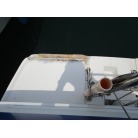 バウデッキに塗装の剥がれとトランサムステップに補修跡があります。