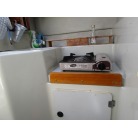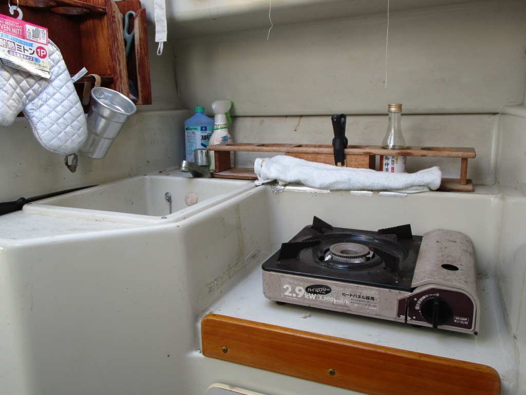 小さいながら流し及び、カセットコンロを装備していますので簡単な調理が可能です。