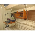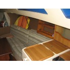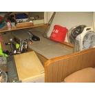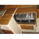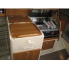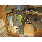 その右舷側には、ギャレーがありシンクと保冷庫およびジンバル式のカセットコンロが装備されていました。