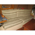 メインキャビンの中央にテーブルがあり、それを挟んで大人3~4人が座れるソファーが両舷に装備されています。