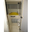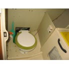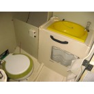 キャビンに入ってすぐの左舷に電動個室のマリントイレが備えられています。