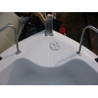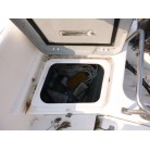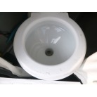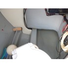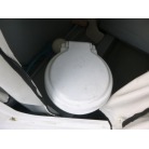 操船席前のハッチを開けると、マリントイレも装備されています。